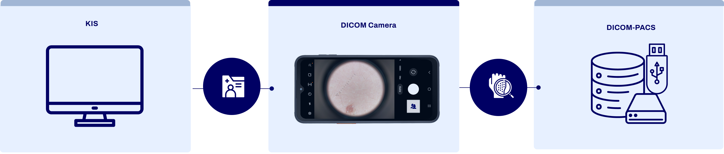 Die DICOM Camera ist eine mobile Lösung für die medizinische Bilddokumentation, mit der Sie Patientenbilder oder -videos direkt am Behandlungsort aufnehmen und in Sekundenschnelle ins PACS übertragen.